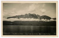 República de Chile. Lago Todos los Santos, Sierra Santo Domingo [fotografía]. Chile : [Editor no identificado , Entre 1930 y 1940]. 1 tarjeta postal : fotografía, monocromo, gelatina sobre papel fibra ; 14 x 9 cm. .