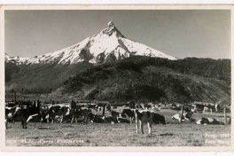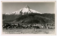Materias: Volcán Puntiagudo (Chile) - Región de Los Lagos (Chile) - Parque Nacional Vicente Pérez Rosales (Chile) - Ganado Bovino - Fotografías - Tarjetas postales - Cordillera de los Andes