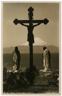 Materias: Tarjetas postales - Historia - Arquitectura religiosa - Fotografías - Puerto Varas (Chile) - Urbanismo - Lago Llanquihue (Chile) - Región de Los Lagos (Chile) - Escultura religiosa - Eastman Kodak Company - Duschl, Juan, Padre - Cerro Calvario (Chile) - Parque Monte Calvario de Puerto Varas (Chile)