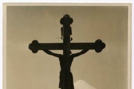 N.o 20 Puerto Varas, Cerro Calvario : [Altar que representa a Cristo crucificado, la Virgen y San Juan] [fotografía] / E. Karl. Puerto Varas : E. Karl , [entre 1939 y 1950]. 1 tarjeta postal : fotografía, monocromo, gelatina sobre papel fibra ; 9 x 14 cm. .