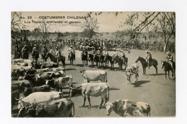 No. 58 - Costumbres Chilenas - Los Huasos apartando el ganado [fotografía] / Gallardo Hnos. Santiago : Gallardo Hnos. , [Entre 1911 y 1916]. 1 tarjeta postal : colotipo, fotomecánico monocromo sobre papel ; 14 x 9 cm. .