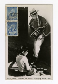 Chile, Niño Lustrador de Botas [fotografía] / Curphey y Jofré Ltda. Chile : Curphey y Jofré Ltda. , 1943. 1 tarjeta postal : fotografía, monocromo, gelatina sobre papel fibra ; 9 x 14 cm. .