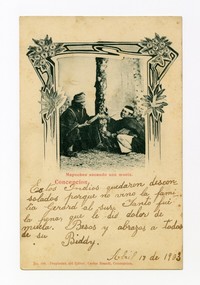 Dedicatoria manuscrita en el tiro: "Estos Indios quedaron desconsolados porque no vino la familia Gerard al sur. Tanto fué la pena, que le dio dolor de muela. Besos y abrazos a a todos de su Biddy. Abril 18 de 1903"; dirigida a la Srta. Julieta Gerard, Hotel Oddo, Santiago.