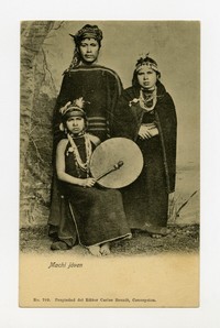 Machi jóven [fotografía] / Carlos Brandt. Concepción : Carlos Brandt , [Entre 1895 y 1905]. 1 tarjeta postal : colotipo, fotomecánico monocromo sobre papel ; 9 x 14 cm. .