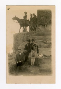 [Retrato de grupo mixto, posan bajo el Monumento "Al Ejército de Los Andes"] [fotografía]. Chile : [Editor no identificado] , Entre 1929 y 1939]. 1 tarjeta postal : fotografía, monocromo, gelatina sobre papel ; 12 x 8 cm. .