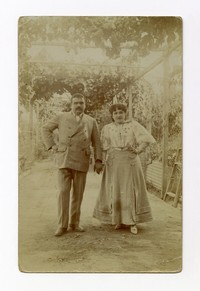 [Joven pareja, retratados bajo la parra de su casa] / [fotografía] / Societe Lumière Chile : Societe Lumière 1905. 1 tarjeta postal : fotografía, monocromo, gelatina sobre papel ; 9 x 14 cm. .