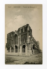 No. 9 - Santiago - Templo del Salvador. [fotografía] / Gallardo, Hnos. Santiago : Gallardo, Hnos. [Entre 1911 y 1916]. 1 tarjeta postal : colotipo, fotomecánico monocromo sobre papel ; 9 x 14 cm. .
