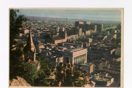 [Panorámica de Santiago, desde el Cerro Santa Lucía] [fotografía] / Foto Cori. Santiago : Foto Cori , [19--]. 1 tarjeta postal : medio tono, fotomecánico policromo sobre papel de fibra ; 14 x 9 cm. .