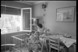 [Mujer junto a niño en el interior de una vivienda] [fotografía] Antonio Quintana.
