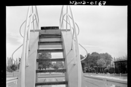 [Escalera que lleva a trampolín en piscina] [fotografía] Antonio Quintana.