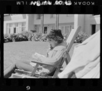 [Mujer fumando mientras lee en el jardín de su casa] [fotografía] Antonio Quintana.