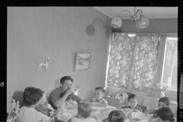 Fotografias del interior de una vivienda en las que aparece un grupo familiar compuesto por dos adultos y varios niños.