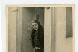 Adelina Casanova Vicuña, en la puerta de su casa; Calle Corbalán Melgarejo; hoy, Centro Cultural Gabriela Mistral (GAM); Barrio Lastarria [fotografía].