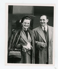 Eliane Ross de Ureta y José Ureta Casanova; Londres, 1955 [fotografía]. Londres : [Editor no identificado], 1955. 1 fotografía : monocromo, gelatina sobre papel fibra ; 10 x 12,5 cm. .