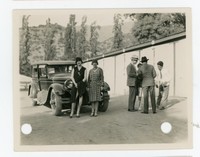 Adelina Casanova de Ureta y otra señora, junto a un automóvil [fotografía]. [Chile : Editor no identificado , entre 1925 y 1929]. 1 fotografía : monocromo, gelatina sobre papel fibra ; 10 ,8 x 8,2 cm. .