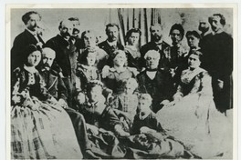 [Retrato de la familia Vicuña Mackenna; sentados, de izquierda a derecha: Lutgarda Vicuña de Zañartu, Benjamín Vicuña Mackenna, Josefa Vicuña de Portales, Carmen Mackenna de Vicuña, Pedro Félix Vicuña y Aguirre, Dolores Vicuña de Morandé; de pie, de izquierda a derecha: Hermenegildo y Bernardo Vicuña, Ponciano Dávila, Luisa Vicuña de Dávila, Juan Vicuña, Carmen Vicuña de Vicuña, Eladio Vicuña, Manuela Subercaseaux de Vicuña, Gertrudis Vicuña, Nem...