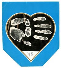 Imagen enmarcada en cartulina celeste, forma de corazón.