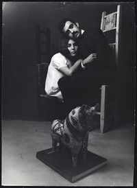 [Retrato de Claudia Lanzarotti y Jaime Morera; el libro "World Atlas" y un torito de Pucará de cerámica policromada] [fotografía] / Bob Borowicz. Santiago : Bob Borowicz , [19--]. 1 fotografía : monocromo, gelatina sobre papel fibra ; 36 x 50,5 cm. .