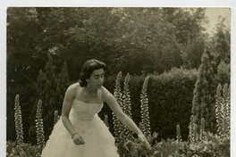 [Niña adolescente acaricia un perro Collie; lleva vestido largo de organdí bordado, con breteles anudado al cuello, arete y pulsera] [fotografía] / Bob Borowicz. Santiago : Bob Borowicz , [entre 1952 y 1960]. 1 fotografía : monocromo, gelatina sobre papel fibra ; 28 x 35,5 cm. .