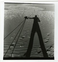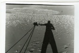 [Silueta alargada del fotógrafo y su trípode con la cámara, iluminación natural] [fotografía] Chile : [entre 1952 y 1959]. 1 fotografía : monocromo, gelatina sobre papel fibra ; 27 x 28,5 cm. .