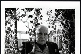 Imagen donde se aprecia al Cardenal Silva Henríquez, sentado, manos cruzadas entre las plantas trepadoras de hiedra canaria.