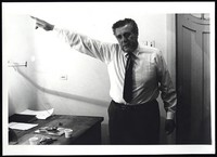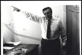 Imagen donde se aprecia en un plano americano a don Ramón Vinay, en una oficina, indicando una acción.