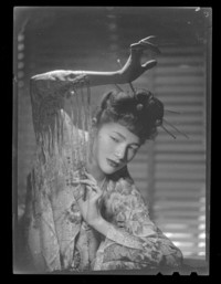 [Alma Montiel, caracterizada para la obra de teatro "La princesa Aoi no ue"; basada en una de las seis piezas de teatro del Noh Moderno de Yukio Mishima] [fotografía] / Alfredo Molina Lahitte. [Santiago] : Alfredo Molina Lahitte, [ca. 1960]. Negativo : monocromo, gelatina sobre acetato de celulosa ; 9 x 12 cm. .