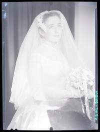 Ester Miquel [con su vestido de novia] [fotografía] / Alfredo Molina Lahitte. Santiago : Alfredo Molina Lahitte, [entre 1959 y 1970]. Negativo : monocromo, gelatina sobre acetato de celulosa ; 9 x 12 cm. .