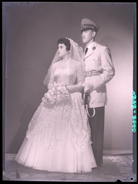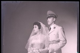 Nívea Paredes [con su marido, día de su boda] [fotografía] / Alfredo Molina Lahitte. Santiago : Alfredo Molina Lahitte, [entre 1955 y 1965]. Negativo : monocromo, gelatina sobre acetato de celulosa ; 9 x 12 cm. .