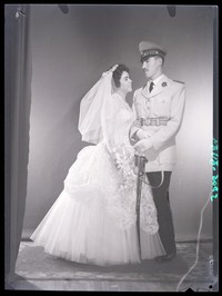 Nívea Paredes de Bahamondes [con su marido, día de su boda] [fotografía] / Alfredo Molina Lahitte. Santiago : Alfredo Molina Lahitte, [entre 1955 y 1965]. Negativo : monocromo, gelatina sobre acetato de celulosa ; 9 x 12 cm. .