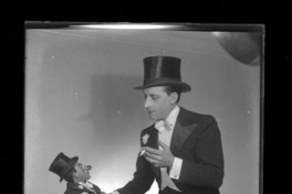 Justo Agudiez, y su muñeco, Don Pánfilo. [fotografía] / Alfredo Molina Lahitte. Santiago : Alfredo Molina Lahitte, [1940]. Negativo : monocromo, gelatina sobre vidrio ; 9 x 12 cm. .