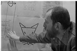 Eugenio Dittborn, artista visual chileno, ganador del Premio Nacional de Artes Plásticas en el año 2005, en varias imágenes durante una entrevista hecha por Claudia Donoso (Apsi)en el mes de noviembre de 1985 y otra hecha por Ernesto Saul, en el mismo mes y año (Cauce).