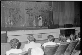 Acto por los derechos humanos celebrado en el Teatro Caupolicán el día 9 de diciembre del año 1985. Se destaca entre ellos el sacerdote Rafael Marotto, la presidenta de entonces de la AFDD Sola Sierra, Fanny Pollarolo yla psiquiatra Paz Rojas.