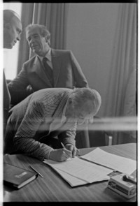 [Acto de firma] [fotografía] / Inés Paulino. [Santiago de Chile] : Inés Paulino , 1984. 18 negativos : monocromos, gelatina sobre acetato de celulosa ; 35 mm. .