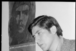 Rolando Calderón Vicepresidiente de la Cut, miembro del Comité Central del Partido Socialista. En las imágenes de diciembre de 1972, ya ungido como Ministro de Agricultura del gobierno de Salvador Allende, al parecer en la sede de la CUT. En la primera fotografía en la muralla hay fotos de Ernesto Guevara, en una de ellas se lee: Che Vive... en los pueblos que luchan por su liberación.
