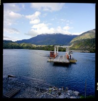 [Balsa para cruzar el río Yelcho, Carretera Austral, Región de Los Lagos] Chile : Jack Ceitelis, 1984. Negativo : policromo, gelatina sobre acetato de celulosa ; 6 x 6 cm. .