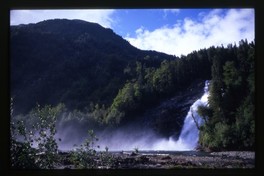 [Bosque nativo; Salto de agua cae al lago] [fotografía] Jack Ceitelis.