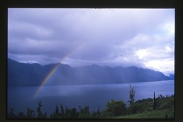 [Paisaje patagónico; entre nubes, un arco iris cae al lago] [fotografía] / Jack Ceitelis. Chile : Jack Ceitelis, [19--]. Diapositiva : policromo, gelatina sobre poliester ; 35 mm. .