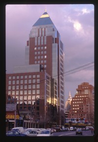 [Alta torre de departamentos, aledaño a otros edificios de gran altura] [fotografía] Jack Ceitelis.