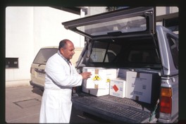 [Camioneta con material radiactivo, almacenado en cajas de cartón] [fotografía] / Jack Ceitelis. Santiago : Jack Ceitelis, [1985]. Diapositiva : Policromo, gelatina sobre poliester ; 6 x 6 cm. .