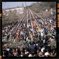 [Festividad de Nuestra Señora del Carmen de La Tirana: Niñas danzan y cantan, sostienen cinta de color unida a una vara] [fotografía] / Jack Ceitelis. Chile : Jack Ceitelis, 1981. Diapositiva : policromo, gelatina sobre poliester ; 6 x 6 cm. .