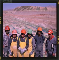 [Retrato de trabajadores mineros; el desierto, como telón de fondo] [fotografía] Jack Ceitelis.