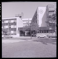 Materias: Automóviles - Santiago (Chile : Ciudad) - Ceitelis Rubinstein, Jacobo - Hospital del Trabajador (Chile) - Historia - Fotografías - Arquitectura - Fotógrafos - Hospitales