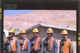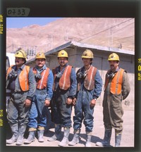 [Retrato de mineros con equipamiento de protección] [fotografía] / Jack Ceitelis. Chile : Jack Ceitelis, [1985]. 2 Diapositivas : policromo, gelatina sobre poliester .