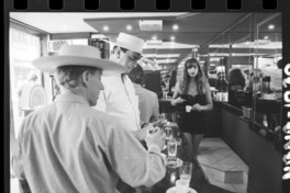 Materias: Fotografías - Cafés con piernas - Mujeres con minifaldas atendiendo un Café - Hombres en un Café con piernas - Santiago (Chile : Ciudad)