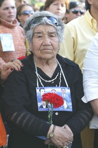 Elena Muñoz, viuda de Maureira el el acto de la inauguracion del Memorial de las víctimas de Lonquén en el Cementerio Parroquial de la comuna de Isla de Maipo [fotografía] / Luis Navarro Vega. Isla de Maipo, Chile : Luis Navarro Vega, 2008. 28 fotografías : formato digital ; .