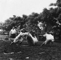 [Hombres amarrando a un animal] [fotografía] Tito Vásquez