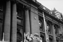 [Salvador Allende, discurso en el frontis de la Biblioteca Nacional] [fotografía] Tito Vásquez