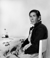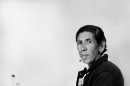 [Mujer al costado de una mesa] [fotografía] Tito Vásquez