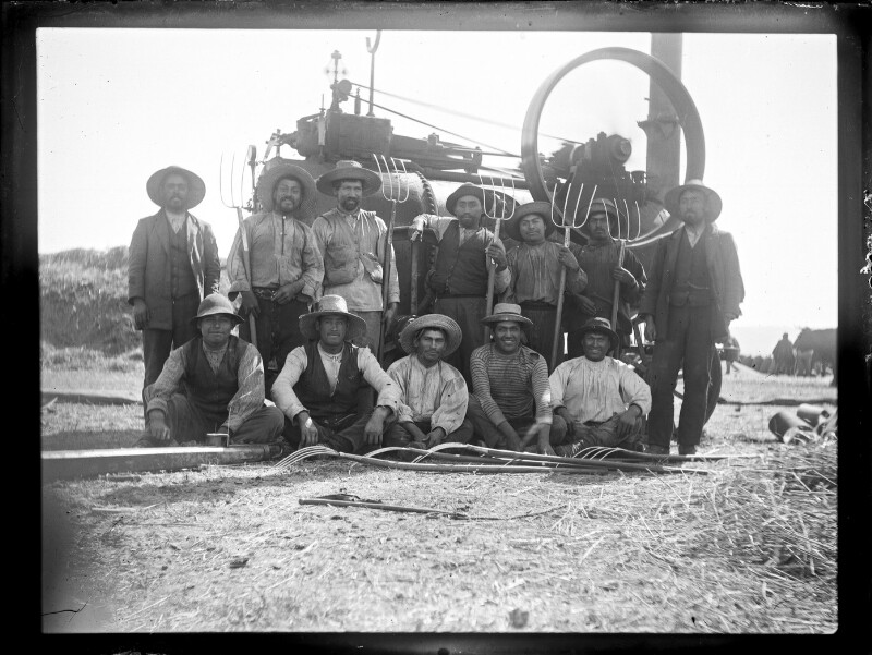 [Jornaleros en Cholchol] Benedicto Rivas. Cholchol, Chile: Benedicto Rivas [1930] 2 placas de vidrio monocromo, 9 x 12 cm. .